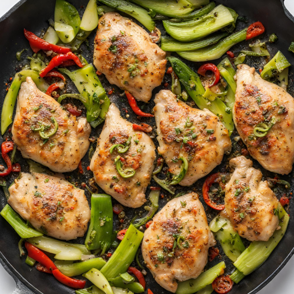 - 1-1/2 lbs boneless skinless chicken thighs or breast, thinly sliced