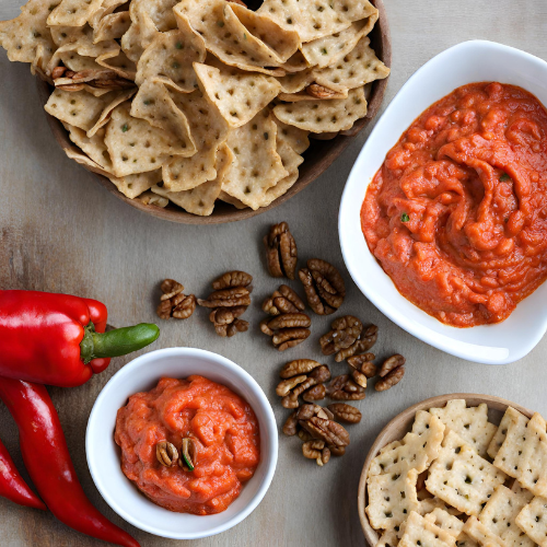 - Add the roasted red peppers to the food processor, and pulse a few more times to combine. You can adjust the processing time to achieve your desired texture