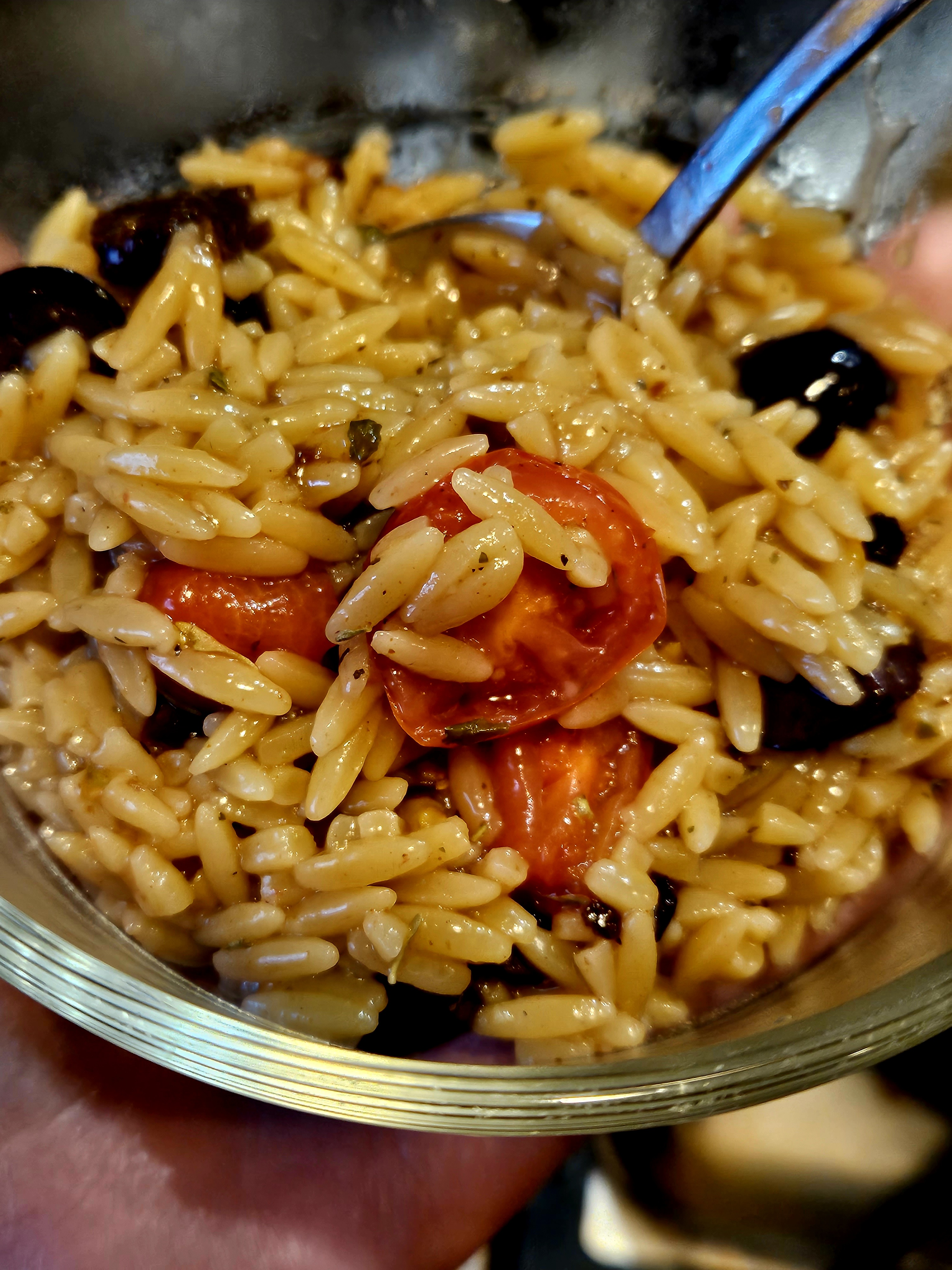 2. Orzo is cooked when all the liquid is absorbed, and it has a nice pasta-like texture. Add more water if needed at the end.
