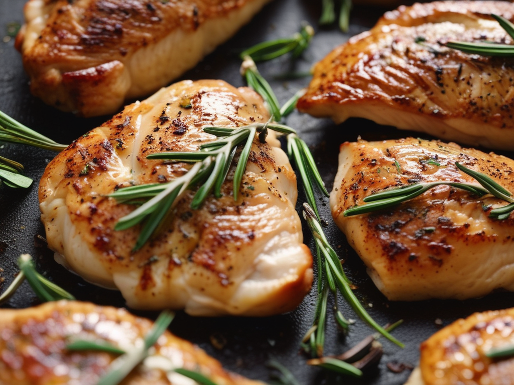 - In a small bowl, mix together minced garlic, olive oil, paprika, dried thyme, dried rosemary, salt, and pepper to create a flavorful marinade.