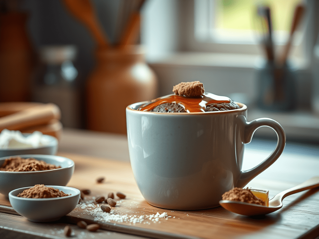 - In a microwave-safe mug, mix the flour, carob powder, baking powder, and salt.