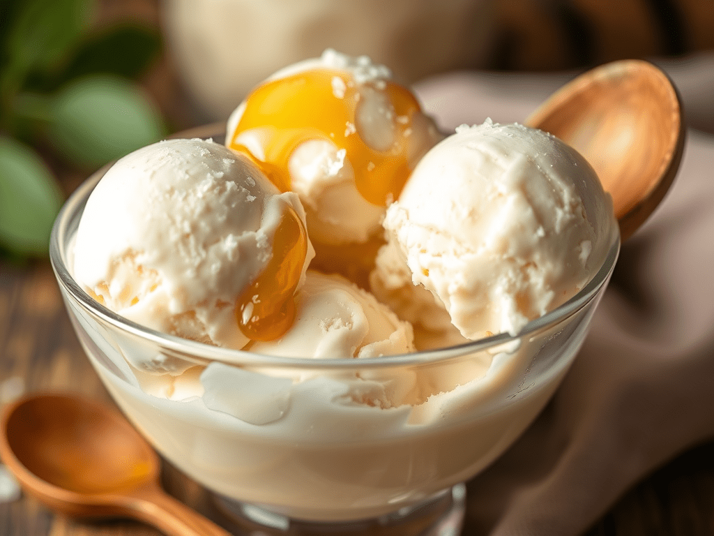 - Churn in an ice cream maker according to manufacturer instructions. Alternatively, pour into a shallow container and freeze, stirring every 30–60 minutes until scoopable.